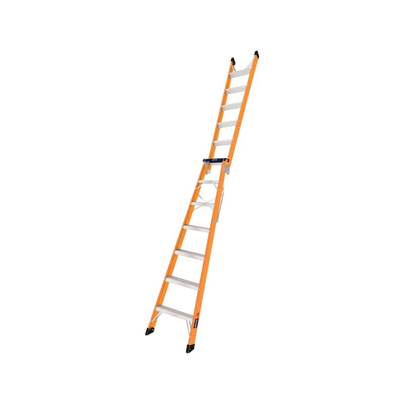 Our Citeco 2.1-3.8m dual purpose fibreglass ladder also has a durable top plate, non-conductive stiles and non-slip feet.