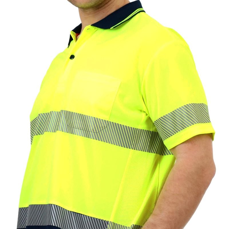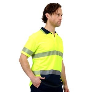 Hi-Vis short sleeve, button up polo features a ribbed collar and chest pocket. Hi-vis with reflective tape making it suitable for Day/Night use. Lightweight with sports mesh side panels to keep you cool