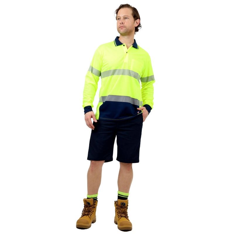 Hi-Vis long sleeve, button up polo features a ribbed collar and chest pocket. Hi-vis with reflective tape making it suitable for Day/Night use. Lightweight with sports mesh side panels to keep you cool