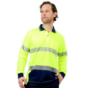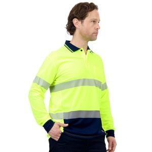Hi-Vis long sleeve, button up polo features a ribbed collar and chest pocket. Hi-vis with reflective tape making it suitable for Day/Night use. Lightweight with sports mesh side panels to keep you cool