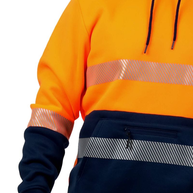 Hi-Vis Day/night hoodies features reflective tape making it suitable for Day and night use. The hoodie is made with a soft brush back fleece and features front kangaroo pocket with an internal pocket and a sleeve patch pocket.