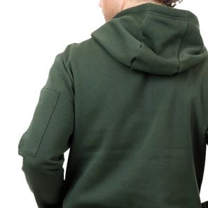 The work hoodie is made with a soft brush back fleece and features front kangaroo pocket with an internal pocket and a sleeve patch pocket.
