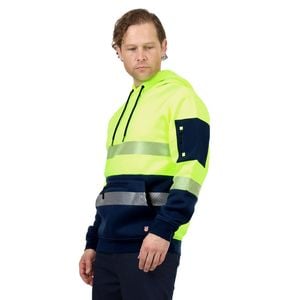 Hi-Vis Day/night hoodies features reflective tape making it suitable for Day and night use. The hoodie is made with a soft brush back fleece and features front kangaroo pocket with an internal pocket and a sleeve patch pocket.