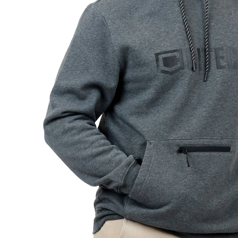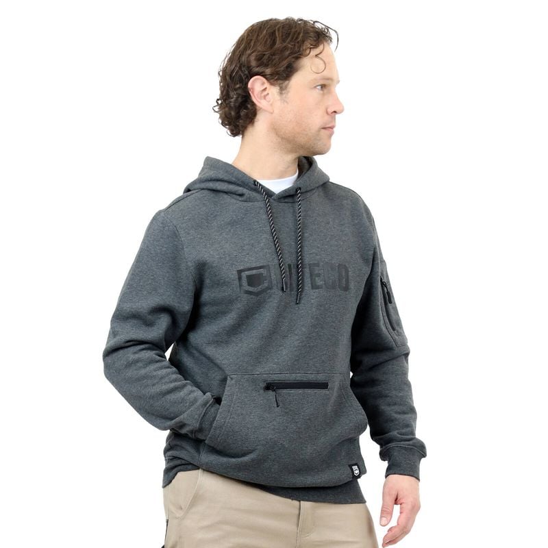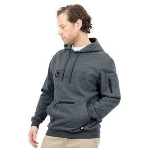 The work hoodie is made with a soft brush back fleece and features front kangaroo pocket with an internal pocket and a sleeve patch pocket.