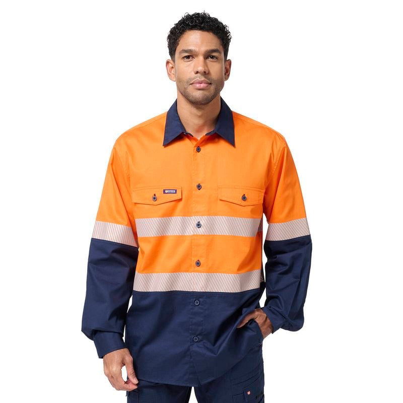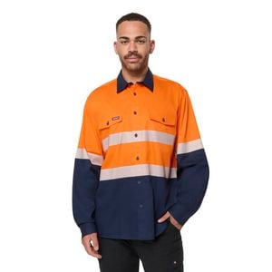 Size 2XL Orange/Navy Long Sleeve Taped Shirt Hi Vis