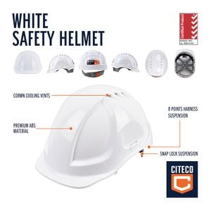 The vented CITECO safety helmet is made of durable ABS plastic type 1, the safety helmet features crown cooling vents that reduce heat and perspiration for the user. It also comes with 25mm jack socket is compatible with AS/NZ hearing protection and accessories.