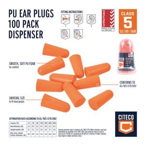 CITECO class 5 PU uncorded Earplugs 100 Pairs with a Transparent plastic box protection up to 26.1dB.