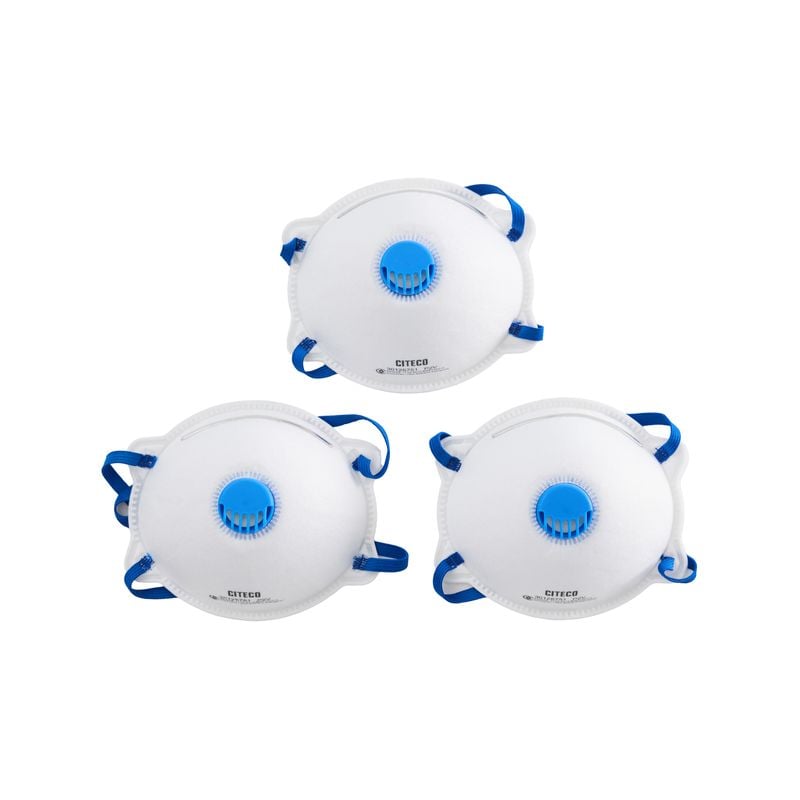 The Citeco 3 Pack P2 Valved Respirator is ideal for use against both mechanically and thermally generated particulates through sanding, dusting, grinding or combustion and low toxicity mists that do not produce harmful gases or vapors. Featuring a dual head strap for optimum fit it also has an adjustable nose piece that easily works with most glasses or goggles.