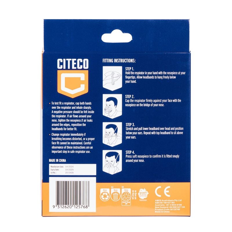 The Citeco 10 Pack P2 Valved Respirator is ideal for use against both mechanically and thermally generated particulates through sanding, dusting, grinding or combustion and low toxicity mists that do not produce harmful gases or vapors. Featuring a dual head strap for optimum fit it also has an adjustable nose piece that easily works with most glasses or goggles.