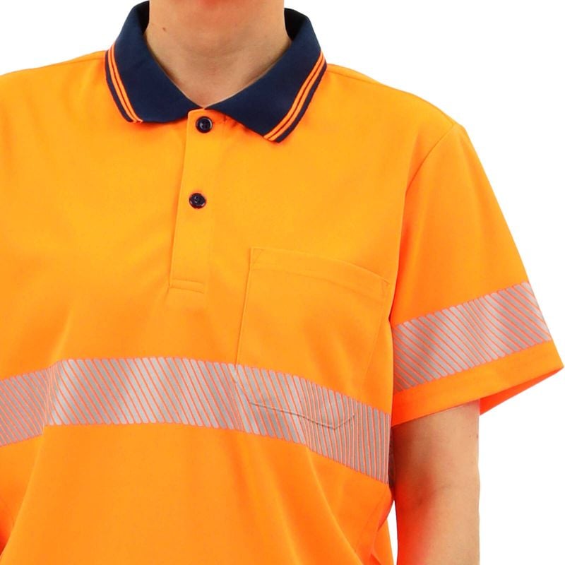 Hi-Vis short sleeve, button up polo features a ribbed collar and chest pocket. Hi-vis with reflective tape making it suitable for Day/Night use. Lightweight with sports mesh side panels to keep you cool