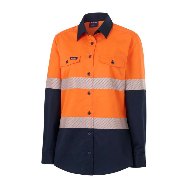 Size 12 Orange/Navy Womens Long Sleeve Shirt Taped Hi Vis